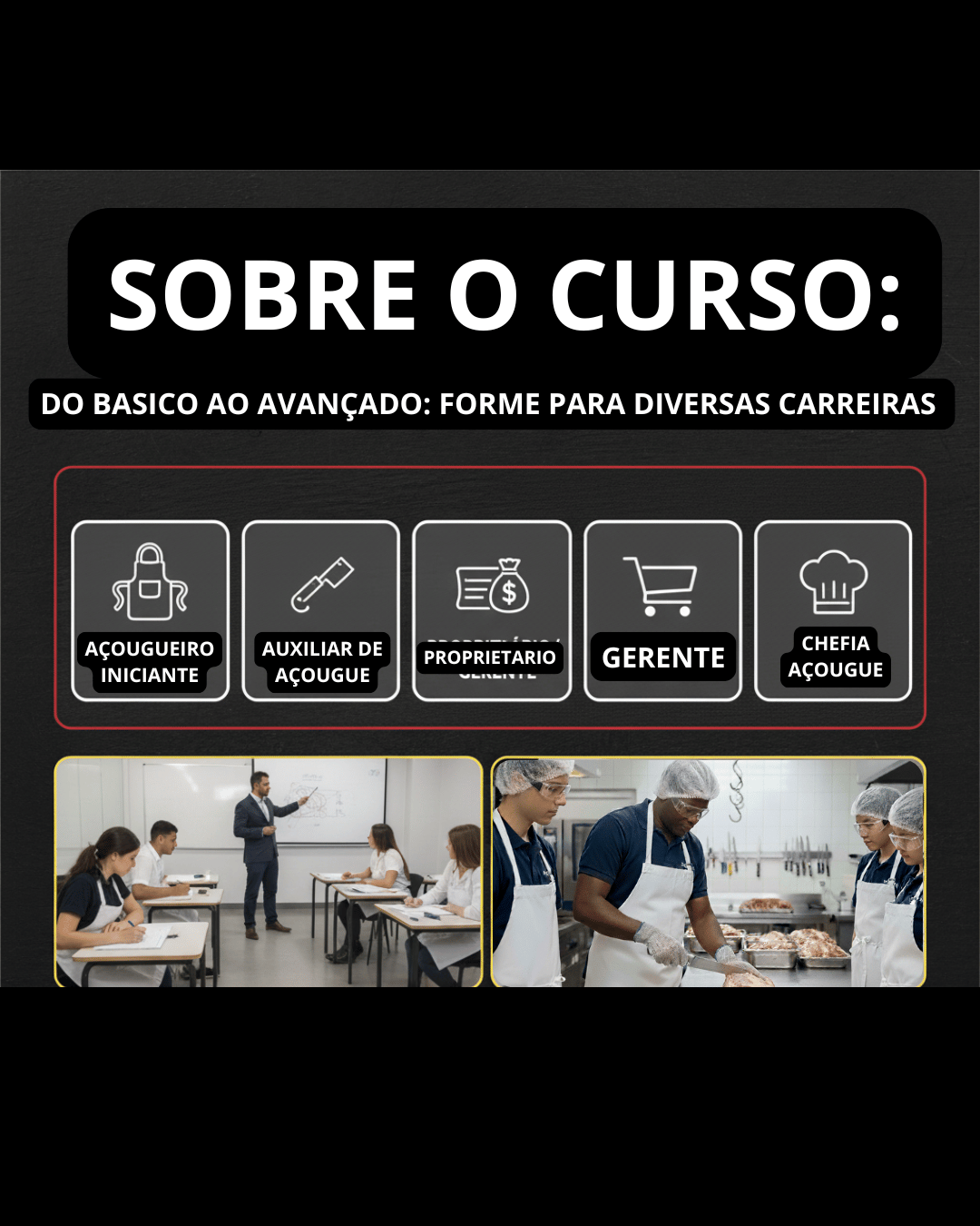 - Desenvolver habilidades técnicas que farão a diferença no dia a dia do açougue.